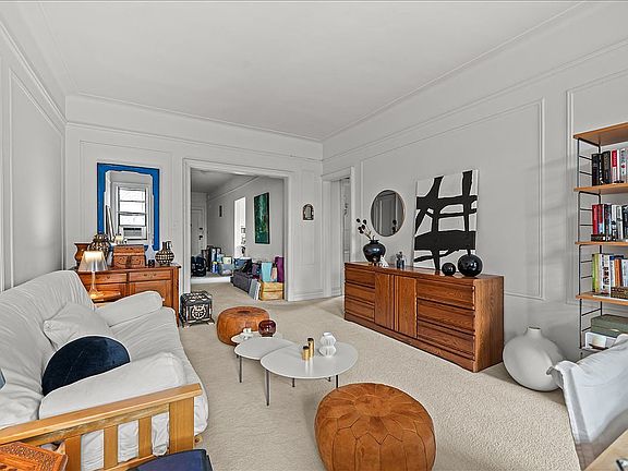 Welcome to Residence 6K at 38-10 35th Avenue, an elegant top-floor one-bedroom co-op in the heart of Jackson Heights. Enter through a gracious foyer lined with three expansive walk-in closets featuring custom built-in shelving, offering both sophistication and practicality. The sun-drenched living room is framed by east and north-facing windows, creating an airy ambiance with natural light throughout the day. A generously sized eat-in kitchen provides the perfect setting for culinary creativity and stylish dining. The home’s top-floor position ensures quiet privacy, enhancing its serene atmosphere. Beautifully maintained and thoughtfully designed, this residence combines timeless charm with luxurious comfort