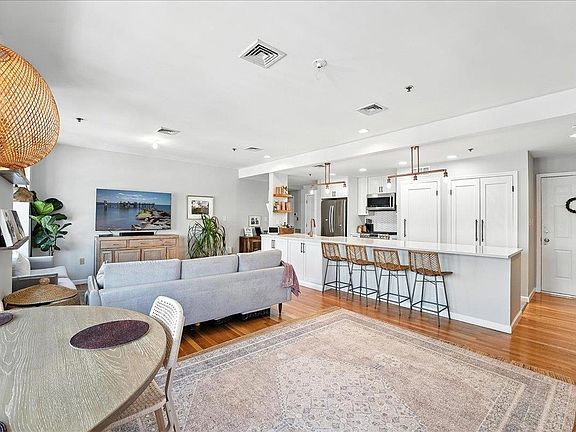 Welcome to 83-85 Grand Street, Unit 5B a rare top-floor gem in the heart of downtown Hoboken! This beautifully updated 2 bedroom + Home Office, 2 bath residence offers a seamless blend of comfort, convenience, and style. Step into a sun-drenched open living space with hardwood floors, oversized windows, and 9'+ ceilings that create an airy, loft-like feel. The recently renovated kitchen features modern countertops, stainless steel appliances, and ample cabinet storage and is perfect for entertaining or everyday cooking. Both bedrooms are generously sized with large closets, while the modern bathroom includes contemporary finishes and a deep soaking tub. The crown jewel of this home is the private terrace, ideal for al fresco dining, morning coffee, or evening relaxation with skyline views. Additional features include in-unit washer/dryer, central air conditioning, and a dedicated covered parking space. Located just blocks from the PATH, NJ Transit, and Hoboken Terminal, this unbeatable location offers quick access to NYC, plus you're surrounded by Hoboken's best dining, boutiques, parks, and the waterfront. Sorry, no dogs accepted. Cats OK. Don't miss this opportunity to live in one of Hoboken's most desirable neighborhoods