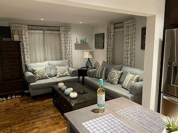 - Stone/Granite/Solid Counters, Bathroom With Tub & Shower, Living Room, Kitchen