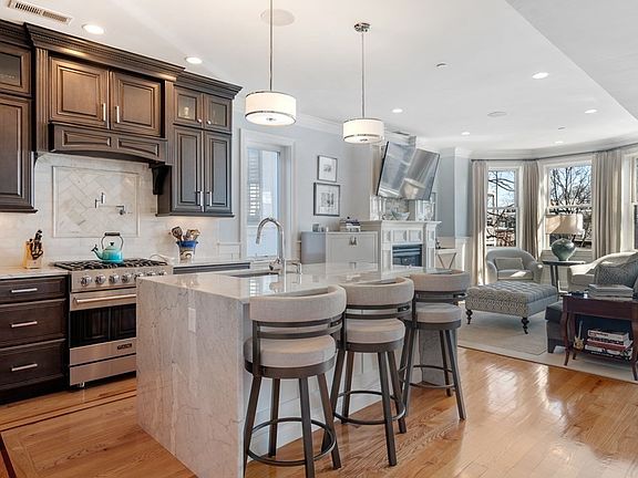 Redefining luxury with this 3 bedroom, 2.5 bath home, newly built in 2014, in South Boston's City Point! Never shovel snow again with its stamped concrete heated driveway featuring a common outdoor gas fireplace, built-in grill and 2 off street parking spaces. This PH duplex offers an open concept living / kitchen area with a separate dining alcove that leads to a private back deck. Accoutrements include Viking appliances, solid maple cabinetry, double mahogany floor inlay, integrated audio, Nest thermostat, a video intercom and gas fireplace. Meticulous details adorn every aspect of this home including fine finish carpentry trim work, quality cabinetry and hand-picked kitchen marble slabs. More high-end features continue in the bathrooms, including heated floors, a television in the vanity mirror, rainfall shower heads, beautiful white Italian Carrera marble tile, and a frameless glass shower enclosure.