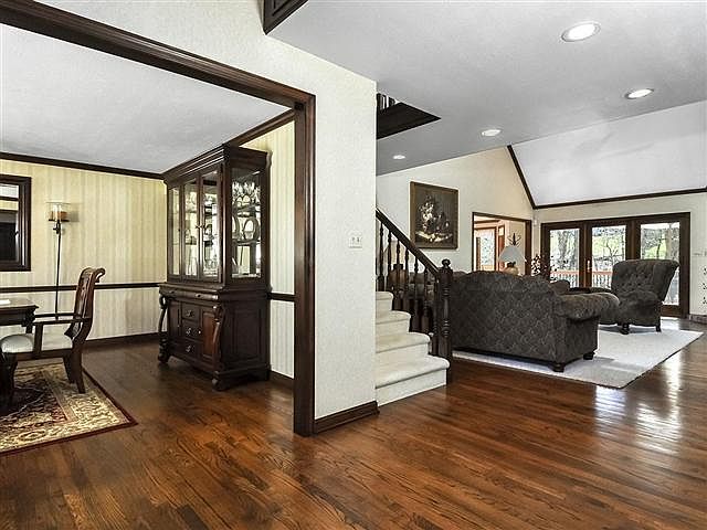 Quality Construction on Cul-De-Sac! Gorgeous Rich Hardwood Floors throughout entire first floor! Crown Moldings, solid 6 Panel Wood Doors, 2 Story Entry with Balcony overlooking Entry and Greatroom w/vaulted ceiling & Fireplace, 9 ' Atrium Door w/side full view windows to Deck!First Floor Master Suite w/ Fireplace & Master Bath, Study w/Built-ins and Judges Paneling, Beautiful Kitchen w/Granite Counter Tops, Large Granite Island, Granite Desk/work station,spacious Breakfast Area with walls of windows overlooking breathtaking level backyard! Elegant Dining Room w/ Bay Window and detailed moldings. 2nd Level 3bedrms+Bonus RM, Jack and Jill Bath + Guest Rm w/Bath, Finished Game Rm w/Oak Judges Paneling walk-out to Patio, Exercise Rm, Full Bath like Spa! 2 Additional Rooms that are unfinished and used for work bench and storage area. First Flr Laundry, 3 Car Attached Level Entry Garage, Fabulous 48x13 Deck w/ retractable awning overlooking resort like lot w/Bridge & scenic Babbling Stream!