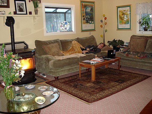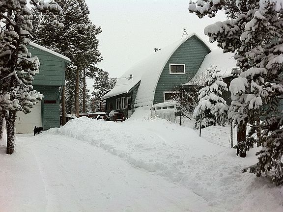 Cozy mountain home only 1.1 miles from the highway. Walk to hiking trails or town! Forced air electric with a pellet stove in the family room. Fireplace in the dining room. Beautiful wood floors in most of the downstairs, tile floor in the bathrooms, with carpet in the rest of the home. Vaulted ceilings in upstairs bedrooms. Fenced in dog yard with doggie door out of laundry room. Granite tile in Kitchen, upgrades throughout the home. Two car garage with an unfinished loft upstairs (could be finished as a mother-in-law apt.). 2018: New metal siding, several new windows, and brand new deluxe roof on both home and garage!