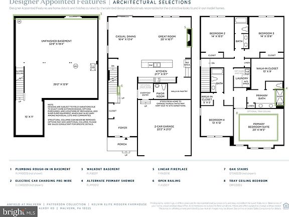 The Kelvin Elite's spacious foyer offers views of the expansive great room and casual dining area with rear yard access. Enhancing the well-appointed kitchen is a large center island with breakfast bar, plenty of counter and cabinet space, and an ample walk-in pantry. The serene primary bedroom suite is highlighted by a generous walk-in closet and a splendid primary bath with a dual-sink vanity, a luxe shower with seat, linen storage, and a private water closet. Two of the secondary bedrooms feature ample closets and share a hall bath with a separate dual-sink vanity area, and one features a walk-in closet and a private bath. Additional highlights include easily accessible second-floor laundry, a powder room, an everyday entry, and plenty of extra storage.