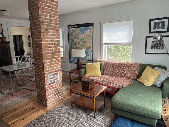 A spacious apartment in an enviable location, of particular interest to those looking for an older home with character. There are both spacious and cozy rooms in this versatile space that could accommodate a single family with kids, folks who need home offices, or roommates. The unit is on the second and third floors of a duplex. A large kitchen with new appliances connects to an open-plan dining and living area (including a windowed nook that has been used as a small office and a pantry). Two other rooms which can function as bedrooms or offices make up the rest of the second floor. There is a full bathroom, with soaker tub and shower, off the kitchen. A large primary bedroom with skylights and a walk-in closet is on the third floor, in addition to a full bathroom (plus washer/dryer) and another office/bedroom. Altogether, there is about 1850 square feet of livable space. It receives plenty of natural light and enjoys cooling cross breezes in the summer. The unit shares a backyard with the downstairs neighbor. It features a deck, patio, and two raised-bed gardens (which you are welcome to farm). There is one off-street parking space. Heat, electricity, and water are included. Pets will be considered on a case by case basis. There is loads of fun nearby, including breweries, cafes, restaurants, and the basketball and futsal courts across the street. Available November 1st. Rent includes heat, hot water, and electric.