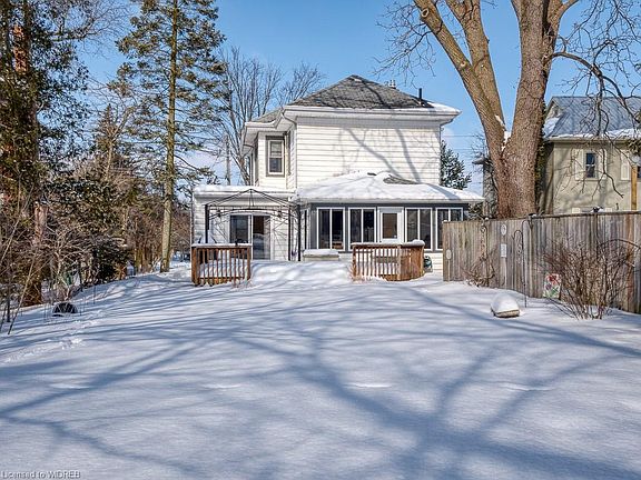A Treasure FOUND! Cherished family home on impressive 56x190' lot in the heart of historic Old South Ingersoll. You'll find modern updates and amenities in this 2140+/- sf gem while much of the original 1890's character has been maintained. Everyone loves a classic covered front porch! Step in. The charming foyer exudes warmth with natural wood trim, hardwood and original millwork. The warm wood tones flow into the spacious living room with it's beautiful windows and inviting newer gas fireplace! Enjoy those special occasions & family dinners in the formal dining room. The modern kitchen features 2 pantry cupboards, lots of cabinetry, a butler's pantry and a main floor laundry option (hookups in one of the pantrys). The cheerful sunroom/breakfast nook is delightful space for yearround reading, relaxing or entertaining with parklike views of the private backyard. Don't forget to check out the main floor den/office (optional main floor bdrm) with access to your back deck. Handy 3 pce bath also on the main. Upstairs are 3 generous bedrooms. The master suite is a king sized space with an open concept dressing room, massive ensuite bath and convenient 2nd level laundry! Awesome potential in the full height walk-up attic. Newer concrete drive and walkway. R2 zoning offers potential to convert this property back to former duplex use. Your search for an affordable home in a prime location is over! Stroll to downtown eateries, shops, library, parks, community centre & schools. Ingersoll hospital and golf course are both nearby! Quick 401 and GM CAMI access. 10 minutes to Woodstock/403. Central to London/Cambridge/Kitchener/Brantford.