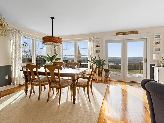 ''Eventide'' is a stunning hill top retreat, offering sweeping views of open fields, mixed woods, and shimmering lake, and is enveloped by sun-drenched days, spectacular big-sky sunsets, and starry skies. For an immersive experience of this property please view our video and 3D Tour. Eventide is set on nearly 7 private acres near the end of a private dead-end street, Eventide's beautifully maintained cape style home is part of a peaceful neighborhood of like-kind properties. The property's land is a picturesque mix of lawn, perennial and vegetable gardens, berry trees, open field, and forest - a welcoming habitat for wildlife. Built circa 2010 with energy-efficient practices and upgraded finishes, the home features an open concept first floor ideal for modern living. The kitchen, dining, and living areas flow seamlessly together and open onto an expansive deck perfect for entertaining or simply enjoying the surrounding beauty. Also on the main level is a spacious primary suite with a walk-in closet and en-suite bathroom, a pantry, mudroom, laundry room and powder room. Upstairs, you'll find two generously sized bedrooms - one with easterly views and the other with westerly views - along with a full bath. The finished, day-lit walkout lower level offers a spacious flexible use room, currently set up as a family room, and that can be customized for various needs, plus a utility and storage room. This property is located in the sought-after rural community of Hope, and is near public access to lakes, ponds, streams, and mountain trails. Enjoy local apple orchards, blueberry fields, distilleries, wineries, breweries, local artisans, and crafters - all just minutes away. Barrett Hill, even has its own Christmas tree farm. 20 minutes to Camden, Rockport, and Rockland, and 30 to Belfast, and 40 to Augusta. With land and building costs still high, and project delivery timelines long, this property is an affordable move-in ready home - just add your personal touches.