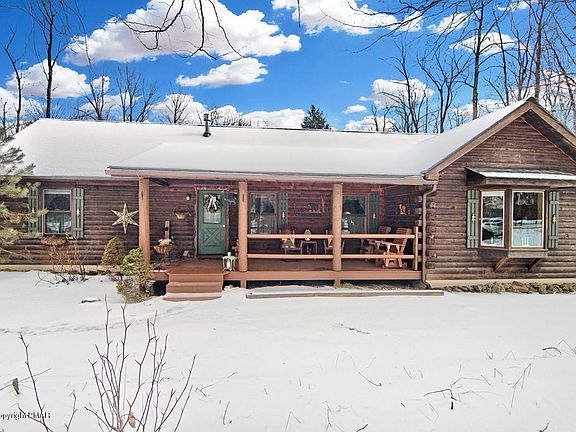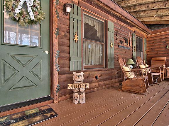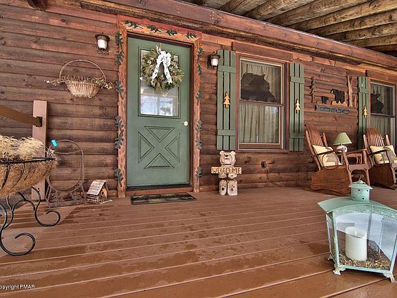 OFFER ACCEPTED NO MORE SHOWINGS. Enjoy Your New Mountain Log Home Featuring A Huge Eat-In Kitchen With 3-Stool Breakfast Bar, Oak Cabinets, Beamed Cathedral Ceiling and Beautiful Oak Floor, Spacious Living Room With Open Floor Plan, Oak Floor And Log Beamed Cathedral Ceiling, 1st Floor Laundry/Pantry With Access To The Deck. Main Floor Master Suite With Bay Window, Walk In Closet And Oak Floor, Master Bath Has A Jetted Tub, Corner Shower & Oak Vanity. Partially Finished Lower Level With Rec Room & Bedroom, Stunning Built In Pool, 1-Car Garage, Stream And Almost 2 Acres Of Privacy. Close To All The Poconos Has To Offer.