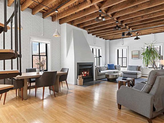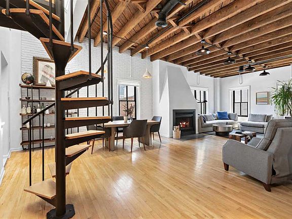 Open House this Sat 8/15 from 12-2PM!! Enchanting penthouse unit of Historic Bldg. built in 1908 on Bright St. in downtown JC. This modern, industrial-chic renovated home is not to be missed! Walk in to a Bright & Sunny open format living space with refurbished original exposed hardwood beams throughout the home and wood burning fireplace with solid stone landing. Gorgeous kitchen with ample storage, SS Appliances and tons of counter space is a pleasure to cook in and offers a window with a view. 2 beautiful bedrooms will surely offer the sweetest of dreams. Remodeled hallway and master bedroom closets with smart storage systems for your convenience. A spiral staircase to the upstairs loft is a stunning centerpiece and would be a perfect spot for an office or den. Home owns roof rights with the ability to build private outdoor rooftop space. 1 Block from Stunning Van Vorst Park and steps away from the pedestrian path to Magnificent Liberty State Park!