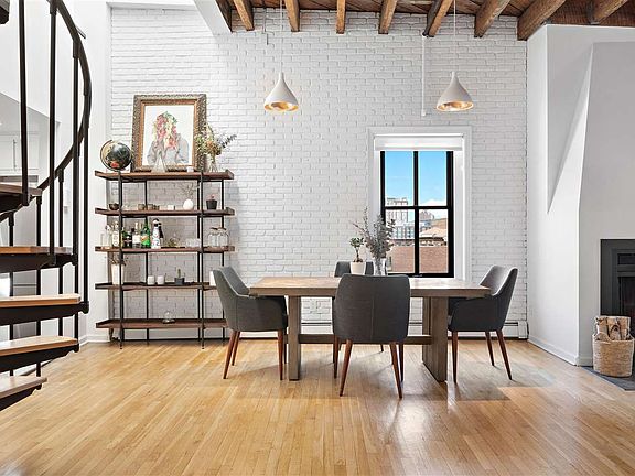 This industrial-chic penthouse has been renovated & modernized, and is perfectly located in downtown Jersey City, just a few blocks away from Grove Street PATH station for an easy commute to NYC. Built in 1908, this building blends history with modern touches, maintaining the original exposed refurbished hardwood beams, with updated lighting, that includes overhead pendants. The unit boasts an open floor plan of the living room, dining room and kitchen area. Stunning hardwood floors and lots of windows provide natural sunlight throughout this beautiful home. The impressive kitchen shows off the white/silver backsplash with white cabinetry, marble counter tops, a deep stainless steel sink and top-of-the-line stainless steel appliances. Bedrooms feature smart storage closets and as an added bonus, head on up the spiral staircase to the loft that can be used as your own private den, home office, gym or whatever your heart desires. Washer/dryer in unit and the tank-less/ on demand water heater is a plus. This unit owns roof rights with the ability to build your own private rooftop space. 83 Bright is just a block away from Van Vorst Park and a few steps away from the pedestrian path to Liberty State Park. Near boutique shops, Restaurants, Newport Centre Mall and so much more. A Must See!
