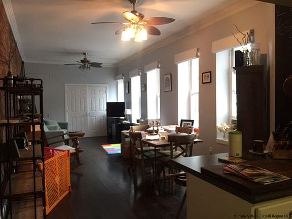 2-bedroom, loft-style apartment in the Rondout area of Downtown Kingston. Recently renovated, on the second floor, this apartment boasts 10 foot ceilings, dark hardwood floors, large living room with exposed brick wall, open kitchen with island and breakfast bar, ceiling fans and large windows throughout. Walk to all the Downtown restaurants, shops, waterfront and festivals. $1300. plus utilities, 1 year lease, references and credit check.