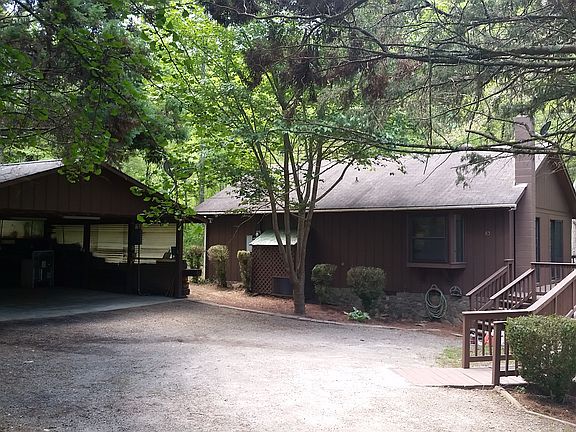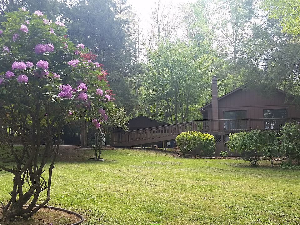 Private 2 bedroom 1-1 / 2 bath year round home or getaway cabin. Home has been remodeled with new kitchen, bathroom and flooring. Cathedral ceilings in living room and kitchen. Nice size master bedroom. Has easy level access with handicap ramp. Deck on 2 sides overlooking beautiful landscaped yard and woods plus small stream. Very quiet tranquil setting. Has 2 car carport and 2 storage sheds