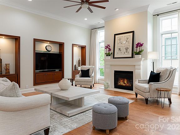 An exceptional home is simply a frame for an exceptional life. This like-new custom-built residence is located in the Villages of gated Thoms Estate, designed for the perfect lock-and-leave lifestyle with its smaller lots and lawn maintenance. The timeless architecture of this home showcases custom selections throughout, featuring an open floor plan with a light-filled gourmet kitchen that flows into the living room, complete with built-ins and a cast stone fireplace. The dining area seamlessly transitions to a screened porch, overlooking the trail system, creating an ideal space for entertaining. The main level offers a primary suite with a spa-like bath and walk-in closet, along with two additional bedrooms and a shared bathroom. The lower level boasts a spacious living room with a wet bar, a guest bedroom, and access to a lower deck that frames the serene setting. The active community features walking trails, a pavilion, community gardens, a basketball and pickleball court.