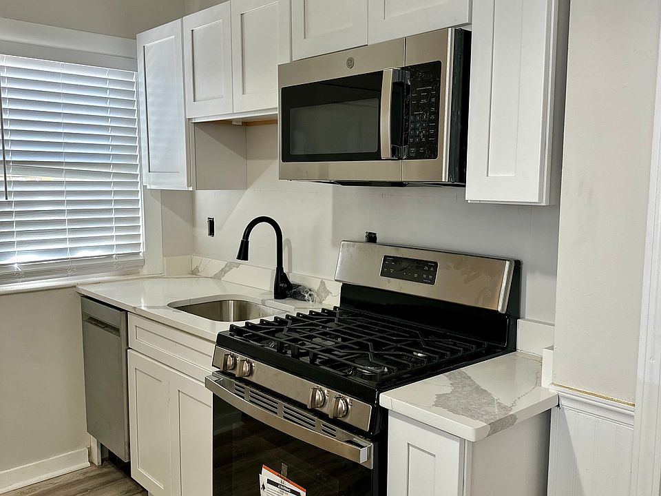 Welcome to this newly renovated 3-bedroom, 1-bath apartment offering approximately 1,300 sq. ft. of comfortable living space. This home features natural hardwood floors throughout, modern stainless-steel appliances, and the convenience of laundry.