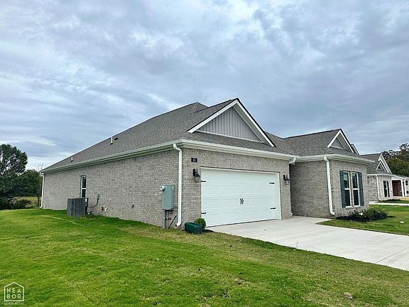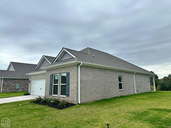 The appealing one-story home includes many contemporary features, and an open-concept design and 9' ceilings enhance the wonderful feel of this home. The kitchen includes a large island perfect for bar-style eating or entertaining, a walk-in pantry, and plenty of cabinets and counter space. The dining room and living room both overlook the covered porch, which is a great area for relaxing and dining al fresco. The large Bedroom One, located at the back of the home for privacy, can comfortably fit a king size bed, and includes an en suite bathroom with double vanity, big walk-in closet, and separate linen closet. Three other bedrooms share a second bathroom. The two-car garage connects to the front hallway where the laundry room and an extra storage closet are also located. Pictures, photographs, colors, features, and sizes are for illustration purposes only and will vary from the homes as built. Additional Features include: granite countertops, kitchen appliances provided are refrigerator, stove, microwave, dishwasher, electric fireplace, brick, gutters, blinds, double sinks in master, walk in shower, 2 car garage, 10 year warranty.