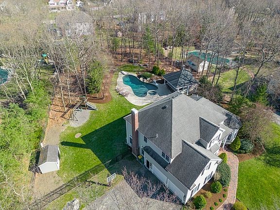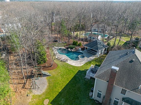 Stunning Colonial-style home at the end of a quiet cul-de-sac located in the desirable Canterbury Estates. Boasting 4 bedrooms and 3.5 bathrooms, two car garage, and over 4600 sqft of living space. As you step inside, you'll be greeted by a grand two-story foyer. To the left is a home office with French doors and to the right is a living room with a vaulted ceiling with custom moldings. The open-concept kitchen is a large space with granite counters, newer appliances, dining area space that all overlooks the living room with a beautiful stone, fireplace. Upstairs, is a spacious primary suite with a large en-suite bathroom and a walk-in closet. Three additional bedrooms and another full bathroom complete the upper level. The finished basement has an additional full bathroom with 1200 sqft of bonus space. The exterior features a brand-new deck and professional landscape is highlighted by in-ground pool, hot tub, and large cabana with an additional half bath and more storage.