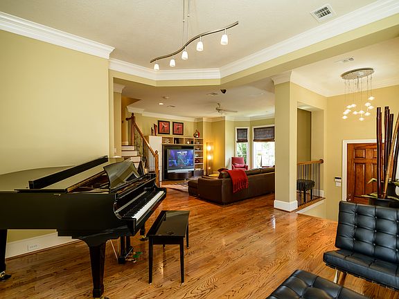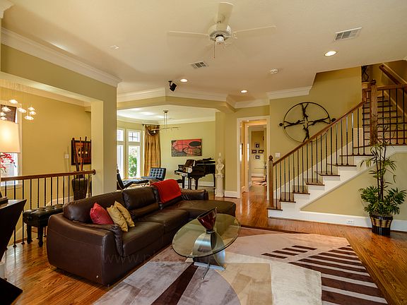 Stunning four-story Brownstone in prestigious East Shore. End unit with lots of natural light. High ceilings, bay windows, upscale finishes, beautiful hardwood floors, KitchenAid appliances, Sub-Zero fridge, custom cabinets, balcony patios, home office, media room, all bedrooms have en suite bathrooms. Pull into your garage and step directly into your personal elevator. Unit faces the waterfront in Olmstead Park. Minutes to Lake Woodlands, Town Center, Market Street, and the Woodlands Pavilion.