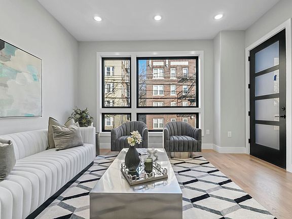 Welcome to 83 Congress, a Luxurious New Construction 4 bedroom 3 full bath duplex unit designed by one of Jersey City's top Home Builders, Blue Chip Properties, known for their unique interior design, high end finishes and quality craftsmanship. This home is a minutes walk to Congress St Light Rail, Washington Park, Riverview Park and Central/Palisade shops! Your main floor enters to an open concept Dining Room / Living Room featuring 10 ft high walls lined with Andersen windows and natural light. Your Chef's kitchen features Top-Line two tone cabinetry, smart stainless-steel appliances, pot filler, waterfall quartz center island and countertops backed with luxurious porcelain backsplash and accent lighting. Main level features Primary bedroom designed with wooden accent wall, modern bedside lighting, barn door walk in-closet and private balcony. Your ensuite bath has been designed with modern yet warm natural tones to create a spa like ambience. Two additional bedrooms, full bath and laundry room hookups complete your main level. Your ground floor level includes full bath and oversized bedroom / entertaining room, which features wet bar and direct access to your private patio and tree lined backyard. Full Smart Home technology allows for ease of living, complete with Ring doorbell, Google thermostat, Lighting Dimmer Switches, and more all accessible via smart phone. Garage features non-tandem parking and High Voltage EV Charging outlet for each unit. The ground level bedroom creates for the perfect Airbnb option. Property is Eligible for Low Rate Loan options and comes with 5 Year Tax Abatement and 10 year warranty.