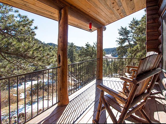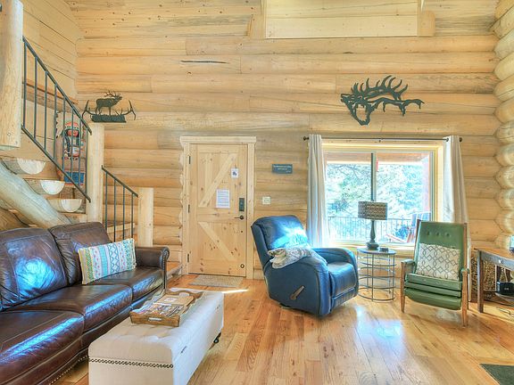 Log Cabin with Scenic Views Bordering BLM Land For Sale in Central CO This amazing log home sitting on over five acres adjoining thousands of acres of BLM was built with quality in mind. This is Colorado living at it's best, adorned with 14" pine logs, knotty oak hardwood flooring, custom wood cabinetry, a gorgeous log stairway with wrought iron rails, log interior walls, log beams, tongue and groove ceilings and Pine Beetle kill finishe. This home offers main level living with open space and gorgeous views from every window. The eat in country kitchen would make any cook happy with ample counter space including steel brushed granite counter tops, stainless steel appliances and a four stool island with butcher block top. The Master Bedroom boasts beautiful views of Mt. Pisgah and a full bath including a claw foot tub and a separate shower with glass surround. Upper level consists of a spacious loft area, two additional bedrooms and a full bath. Sit in the outdoor hot tub and enjoy the silence while surrounded by towering pines and rock formations. Walk out your back door a short five hundred feet to thousands of acres of BLM land for some of the best Elk and Mule Deer hunting in Teller County. You can also enjoy hiking, ATVing and horseback riding in the adjacent common area with access to two miles of private trout stream fishing in crystal clear Four Mile Creek. A fifteen minute drive to the Historic town of Cripple Creek. RV parking Pad with 220 hook ups!! Great income potential with VRBO or Airbnb. Don't miss this one......