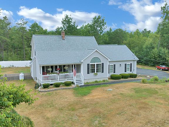 This lovely Cape style home offers a charming front porch, beautiful sunroom with vaulted ceiling, 2 full baths, 3 bdrms, 1st floor bdrm & living room with a pellet stove. Open concept living with hardwood floors throughout. This low maintenance home sits well back on a .93 acre lot with a fully fenced private back yard and a covered front porch to sip your morning coffee. Enjoy the 2 car attached garage, full basement with 2 egress windows and as a bonus...a second oversized 2 car garage with a spacious walk up second level. Only minutes to a variety of shopping, dining, the ME tpk and the Sanford golf course. Less than 45 min to Portland and 35 min to Portsmouth, don't miss out on this wonderful home.
