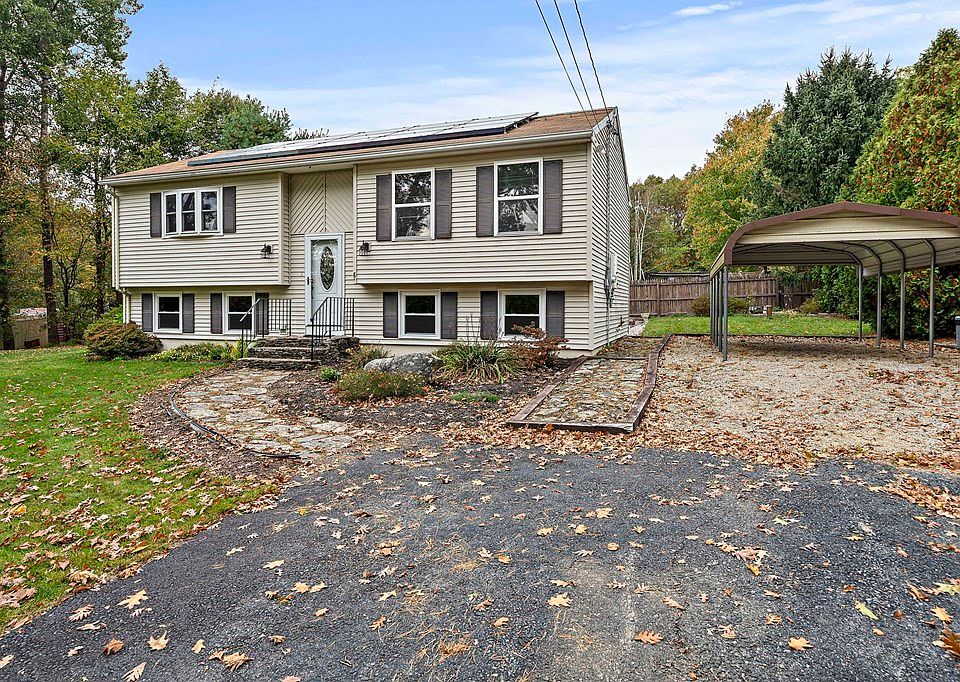 Peace and Tranquility surround This lovely home nestled on a 1.15 acre Suburban Residential lot. This raised ranch boast great character and charm offer six rooms three spacious bedrooms and one bath, Large windows that offer great natural lighting throughout. Exterior features vinyl siding, carport, private deck perfect for entertaining, a custom stone walkway and patio that leads to a tranquil koi fish pond! This commuter dream is conveniently located minutes RT395 RT290 and the MASSPIKE. Call today!