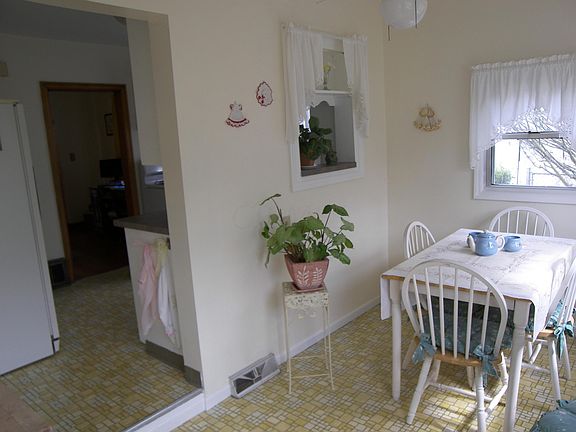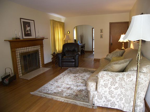 Move in condition home is full of character and charm. Hardwood floors & original hardware. Nice size kitchen has large eating space overlooking back yard as well as dining room. Two fireplaces, Full basement with washer and dryer included. Concrete driveway and private back yard. You will love it!