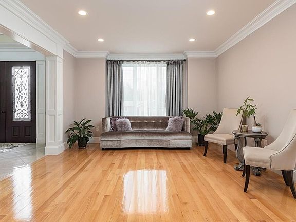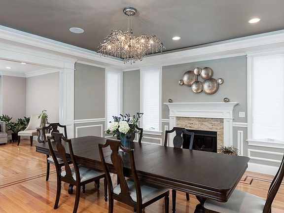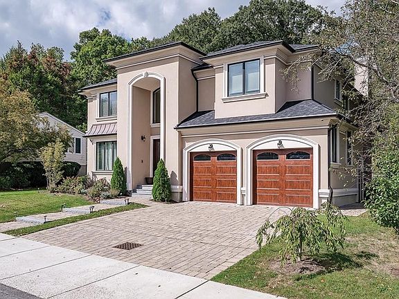 NEWTON Centre ... Built in 2016, this custom-built residence is located in the Oak Hill area on a dead-end street. The well-designed floor plan offers over 6,500 square feet of living space with eight rooms, five and one-half bathrooms, and three fireplaces. The elegant foyer leads to grand rooms on the main level creating a wonderful flow from the beautiful kitchen appointed with high-end appliances, to the dining room with a fireplace and lovely detail to the living room with a coffered ceiling and a fireplace. There are five bedrooms: the first floor has a bedroom and a bathroom, and the second floor has four en suite bedrooms including a luxurious master bedroom with a fireplace and a marble-appointed bathroom . The finished basement contains an additional bedroom, sauna, steam shower, and theater room. The grounds are well-landscaped and include a huge, level fenced backyard with a wonderful patio.