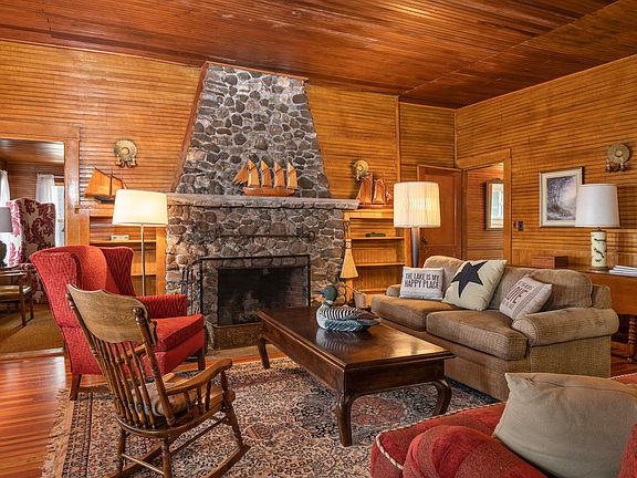 Set on the shore, the property features 466' of water frontage on 27.2 private acres. The property boasts 3 homes and an apartment featuring a 5+ bdrm Main House, 3 bdrm Lake House, 2 bdrm Boat House and a detached oversized 2 car garage with 2+ bdrm Apartment. All homes have been beautifully maintained, feature full kitchens, full baths, laundry, fireplaces or wood burning stoves, and screened porches. The Main House and Lake House sit right on the water with stunning lake views and all homes open to a natural courtyard of trees, grass, and a gazebo offering plenty of space for summer socializing. At the water you'll find a beautiful deep water dock near the Main House with deck space, a pull-in boat slip, and space for additional boats. In front of the Lake House there is a second dock offering easy entry to the lake and space for a boat. Originally a retreat owned by Colby College, the property privately transferred to a family that frequented the camp. Built between 1900-1910 this seasonal family compound has never been publicly offered.