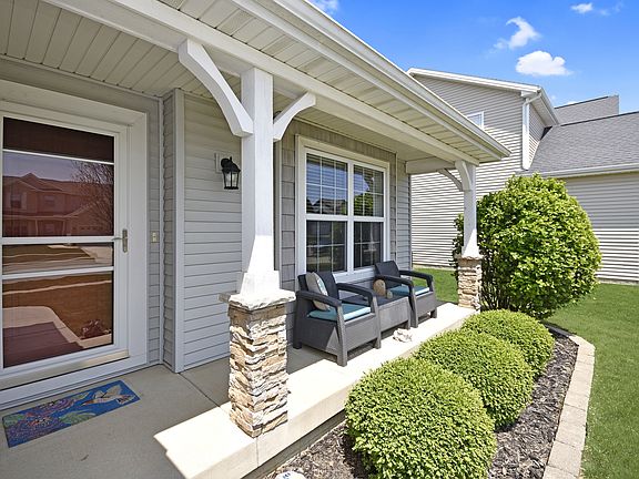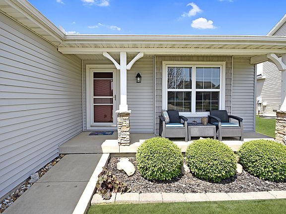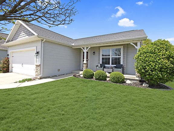 This is one to see in sought after Harvest Pointe! Immaculate and shows like new construction without the new construction price tag. This one owner, open floor plan ranch "Aspen" design Stelle Home features cathedral and vaulted ceilings throughout. Main floor living space has been upgraded with hardwood flooring installed by Carpet Weavers and features a large sliding door to the back as well as a fireplace for the winter months. Large kitchen with all appliances (including washer and dryer) remaining opens directly to the living room and provides ample space for dining. 3 main floor bedrooms with the primary bedroom boasting a fantastic en-suite. Basement is a blank slate, waiting for you to do what you choose and features an egress window as well as full bath rough-in. Currently used for light storage. Backyard is fully fenced in and so private with no backyard neighbors. HVAC is ready for the summer and is tuned up annually. A water purification system has also been installed for you to enjoy. Truly a rare find.