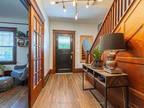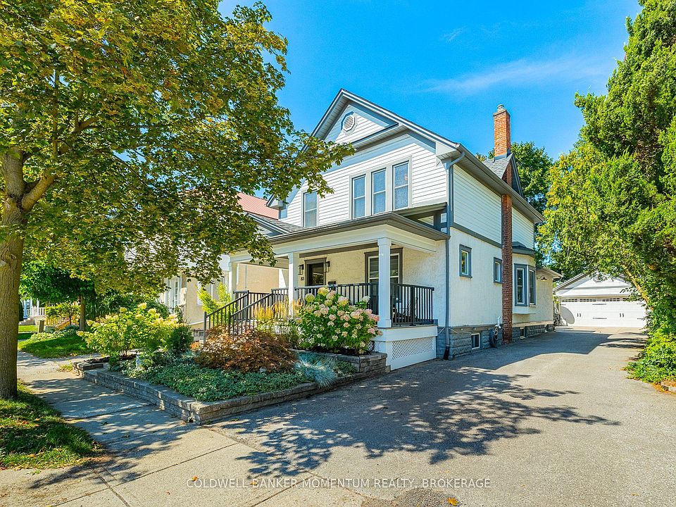 Exceptional one-of-a-kind property in the heart of downtown St. Catharines. Circa 1917, this 2 story century home has all the timelessness of its original design w/ modern updates throughout that makes this such a desirable home to live in. From the moment you enter the welcoming foyer you can feel the homes rich history. The original gumwood trim, doors, high baseboards & classic layout radiates warmth & tradition. With just over 1,950 sq ft of total finished living space there are some really impressive features that is unique to only this property. Newer luxury vinyl plank flooring throughout. The main floor offers a spacious living room w/ lead glass windows, a formal dining room w/ big bay window thats ideal for hosting large gatherings & a versatile den w/ updated 2pc bath that could be used as a 4th bdrm or home office. The heart of the home is the beautifully updated oversized eat-in kitchen that showcases a lrg island w/ newer quartz countertops, newer tile backsplash & pot filler, stainless steel appliances, custom cabinetry by Millbrook Cabinetry & patio doors that lead to a private backyard sanctuary w/ spacious deck (rebuilt in 2019), hot tub (2019), heated saltwater inground pool w/ stone waterfall feature (new saltwater system 2025) & gas hook-up for BBQ. The second floor offers 3 bdrms, an updated 4pc bath w/ vintage claw foot tub, separate shower, newer vanity & lighting (2019). One of the standout features is the super convenient laundry rm on the second floor. The basement is partially finished w/ a rec rm & huge unfinished storage space. The covered cedar front porch was rebuilt (2021) & is the perfect spot to enjoy the last warm days of Summer & the crisp start of Fall. The private driveway fits 6 cars & another standout feature is the detached insulated double car garage w/ hydro & lrg loft for storage. Located in a family-friendly neighbourhood w/ quick & easy HWY access. Walking distance to parks, schools, restaurants & so much more!
