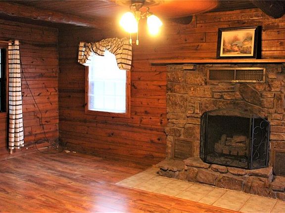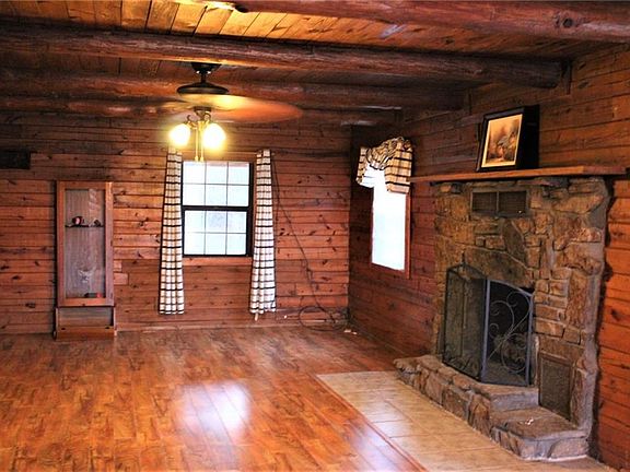 Log home on beautiful 15.8 acres, approximately 1 mile north of the Arkansas border. Live SPRING on property, wet weather creek, beautiful rock bluffs, some pasture and large wooded area. 3 BR 2 BA with Fireplace in Living room (gas logs). Privacy fenced rear yard and some wire fencing along part of property. Outbuilding serves as a 1 car garage/workshop 19 x 24 with concrete floor. Storm shelter and another outbuilding for stoarge and has a pole barn - could have horses. Lots of possibilities for this property! Inviting covered front porch feels like home! Heat source is Fireplace - gas logs. 2 Additional propane outlets are in home to add heaters. Cooling is 1 wincdow unit. Property in the Village of Jane, MO limits and has Pineville, MO postal/mailing address. Creek bed in flood zone but house is not. Lots of possibilities for this property!