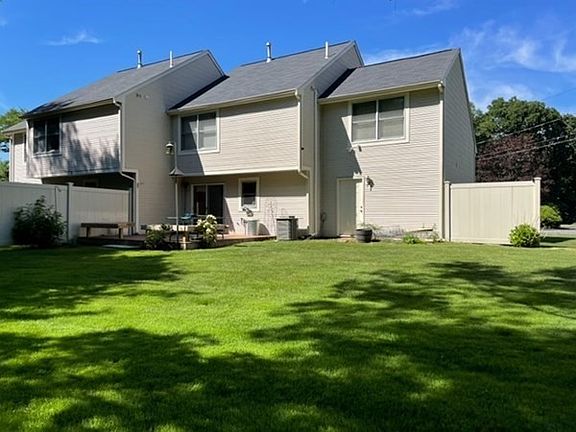 Welcome to East Glen! Village! This quaint, 24 unit subdivision is one of Taunton’s finest community. Located within minutes to routes 140 and 24 and all major shopping and entertainment. This three bedroom unit has much to offer including a main first floor open layout with a spacious living room with wood burning fireplace, a dining area with sliders overlooking a new composite deck and beautiful private back yard, a great kitchen and a half bath. The second level boasts three bedrooms, all generous in size with more than ample walk-in closets and a full bath with laundry. Many updates include gas heating and A/C 2 years old, Roof 3 years old, new carpets and upgraded double asphalt drive. What further makes this unit exceptional is a single car garage attached with rear entry, A/C and a private exterior deck overlooking the well groomed yard. Don't miss your opportunity to take advantage of this home's added bonus of it's unique location at the end of the cul-de-sac.