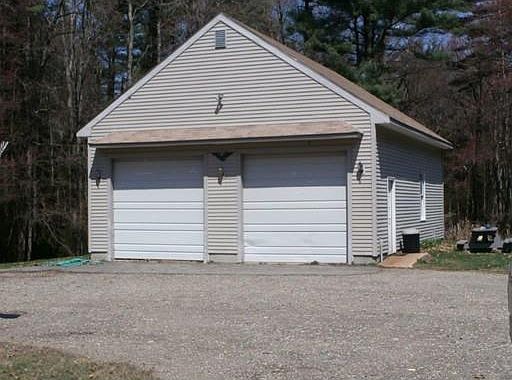 New Price! 3 Bedroom Cape set behind stone walls on a pretty country road with over 8 acres of land! Very nice lot with over 400' of road frontage, front portion is yard & lawn, with back portion wooded with trails. Oversized 28' x 36' detached garage with 13' ceilings, 2 - 10'x10' doors in front, 1 - 9'wx10'h door in rear, propane heater, water hydrant, 100 amp sub-panel and large attic storage area accessed by staircase. Property is bank owned, but many updates have been recently completed including 200 amp service, cedar clapboards on southwest end, carpeting in two bedrooms & hall. A new 4 bedroom leach field has been installed. Living room and dining room have hardwood flooring with fireplace in living room. Partially finished walk-out basement with 3/4 bath. Property has tremendous potential with a little work and would be ideal for the car enthusiast, small farm or trades person in need of a great garage/barn space. Easy commute toward Worcester.