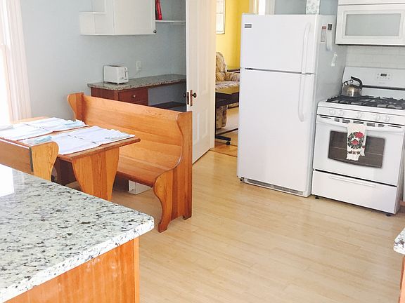 This apartment is situated in the close-knit, family-friendly Oakdale neighborhood. It is in close proximity to downtown Portland, walking distance to Deering Oaks Park and its Farmer's Market, easy access to 295, 3 minutes from Hannaford and Trader Joe's, 1 block from USM. If you're a runner, it's a 4.5 mile loop from your front door around the Back Cove. Heat, water and hot water included (this represents approximately $250/month in a comparable apartment). Recently remodeled kitchen with all new appliances (refrigerator, microwave, stove and dishwasher) and granite counters Washer & dryer in kitchen New windows Recently refinished hardwood floors 9.5ft ceilings Glassed in 3 season porch 1000 sq ft + additional 180 sf workshop/studio + oversized attached 1 car garage Off street parking Workshop/art studio has radiant heat in the floor, pegboard walls. Basement storage space under the shop. Shared snowblower with downstairs occupants Shared backyard and garden boxes with brick patio and fire pit