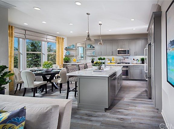 QUICK MOVE-IN of highly upgraded MODEL HOME with over $164,000 in designer options! Stunning MOUNTAIN VIEWS on a premium ridgeline location at The Peake by Shea Homes in the resort-style community of Baker Ranch with NO MELLO ROOS! Beautifully upgraded 3 bedroom +Office/2.5 bath home has an open, spacious Great Room floorplan featuring a contemporary Kitchen with quartz counters and large island with cast iron apron sink and space for barstools, upgraded Mineral (grey) cabinetry & hardware throughout as well as upgraded GE stainless steel appliance package which includes Café French Door Refrigerator. Large Dining Area includes plenty of windows for a light and bright entertaining space leading to patio with trellis and fully landscaped backyard. Generously-sized upstairs bedrooms include an elegant Master Suite with dual sinks, gorgeous tiled shower and large walk-in closet. Convenient upstairs Laundry Room features storage galore, sink and upgraded washer & dryer are included. Backyard includes an extended wood trellis and glass and block wall high atop the ridge providing beautiful, serene mountain views perfect for relaxing or entertaining. Baker Ranchâs extraordinary amenities include lagoon style pools, tennis courts, walking trails, acres of parks, open dining areas, BBQâs, spas, childrenâs splash park, climbing walls, sports courts, picnic spots, a quiet pool for some private time and exquisitely appointed Clubhouse.