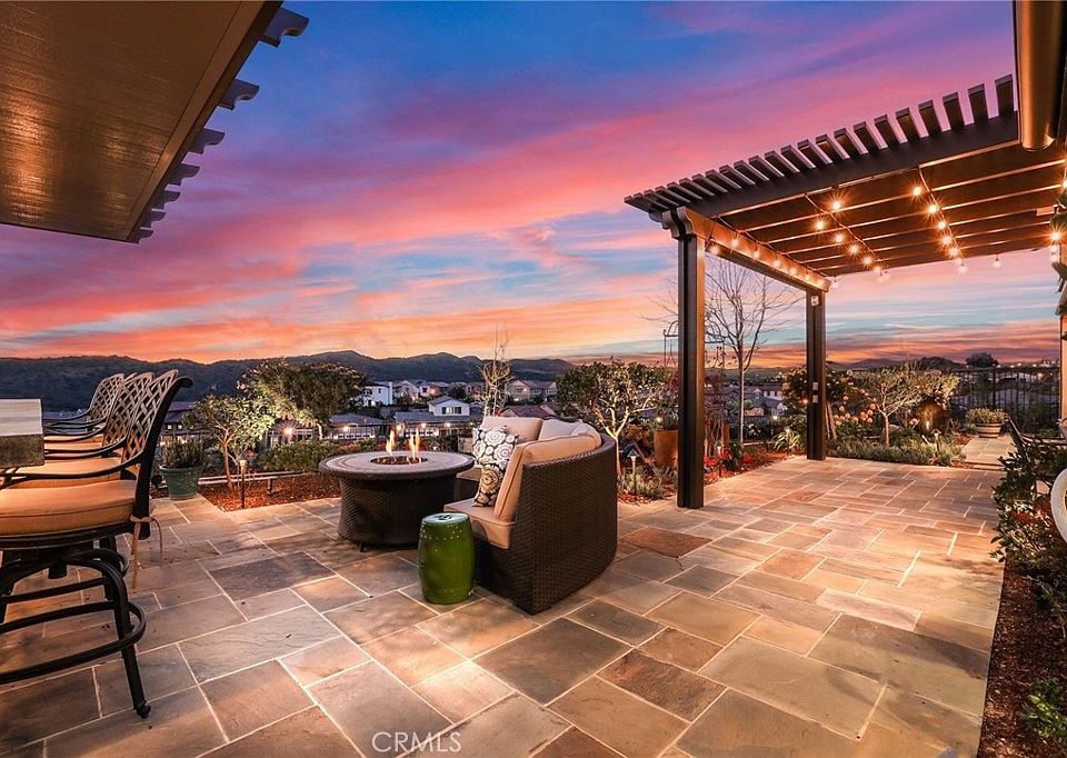 Stunning Expansive Panoramic Views that Range From the Beautiful Snow Capped Mountains to the Piercing Pacific Ocean! Welcome to 83 Garcilla, a Breath Taking Model Quality Residence located in the 55+ community of Esencia, that seamlessly blends Elegance, Contemporary Design and a One-Of-A-Kind Location to create an Absolute Masterpiece! Experience Unparalleled Custom Design, Over $650,000 worth of Upgrades, FULLY PAID FOR SOLAR and Pure Luxury both Indoor and Outdoor all while overlooking incredible year around Sunset Views! Located next to an open green space and with every room providing an awe inspiring view the location and privacy of this home is truly unique and can not be overstated. When you enter the home you are greeted with Two Story Soaring Cathedral Ceilings and Warm Toned Wooden Flooring Running throughout the home. The Great Room features Custom Built-Ins, Crown Moldings, Stunning Custom Stair Railings, Wood Encased Windows and Magnificent Natural Light and Views! Continue into the Gourmet Kitchen fully upgraded with Top of the Line Stainless Steel Appliances, 6 Burner Gas Stove, Gorgeous White Cabinets, Stunning Quartz Counter Tops, Marble Backsplash, Farmhouse Sink, Massive Center Kitchen Island, and Walk In Pantry. Spectacular Pocket Doors allow the entire Kitchen to open up to the CA Room creating quintessential CA Indoor/Outdoor Living. An entertainer’s paradise, the incredible Rodgers Garden Designed backyard boasts Lush Landscaping, Sonos Music Speakers, California Room w/Exquisite Built-In Fireplace, Built-in BBQ and Bar Seating with Overhead Trellis and Ceiling Fan, Fire Pit, Secondary overhead Trellis and seating area and Water Feature..Spend hours outside enjoying the space and views! The Primary Suite is designed w/the essence of Coastal Elegance, surrounded by a light and bright interior and massive windows providing breathtaking views, perfect for each morning. The Spa like Primary Bath does not disappoint featuring Stunning Soaking Tub, Walk-In Shower, Dual Vanities and Massive Walk-in closet with custom built-ins. The Secondary Downstairs Bedroom w/en suite, additional half bathroom and Spacious Office with Custom White Shaker Cabinet Built round out the first floor. The second floor features an incredible Loft, complemented with Organic Wood Beams, Custom Built in Bar with Two Wine Fridges and Sliding Pocket Doors leading out to a Spacious Balcony Offering Majestic Panoramic Views that will Take Your Breath Away!