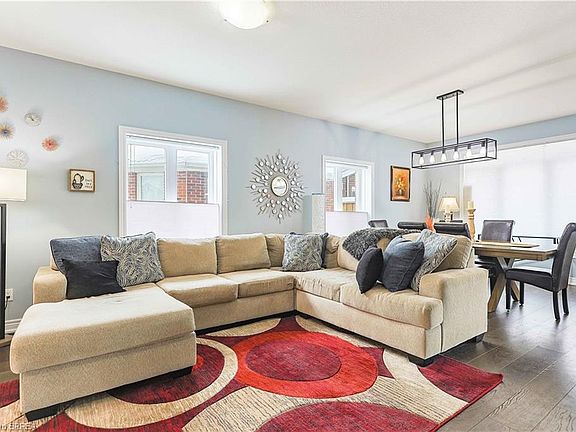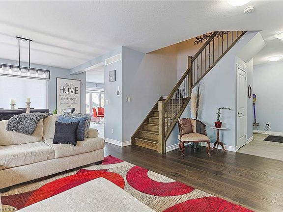 Welcome to this impressive 2570 sq. ft. executive home with a beautiful all-brick exterior, located in a highly sought-after neighbourhood. Featuring 4 spacious bedrooms, 3 bathrooms, and an open-concept layout, this home is perfect for entertaining. The main level boasts a large foyer, powder room, open concept living room and dining room, a gourmet eat-in chef’s kitchen with ample cupboards and counter space, granite counters, an island, and an oversized pantry and mudroom access from the double garage. Garden doors off the kitchen lead to a large, fully fenced yard. Upstairs, indulge in the luxurious primary suite with two walk-in closets, a built-in vanity, and a spa-like ensuite with an open shower and a stand-alone soaker tub. The primary has convenient access to the spacious upper laundry room. Three additional large bedrooms and a full 4 piece bathroom complete the upper level. Hardwood flooring throughout the home, hardwood staircase and railing, 9' ceilings create an airy, open atmosphere. Large windows throughout, filling the home with natural light. Full unfinished basement for storage or ready for your personal touches and more living space! Plenty of windows in the basement and a large cold cellar. Close to schools, parks, shopping, and highways. Double car attached garage parks 2 and the driveway can park 2 more.