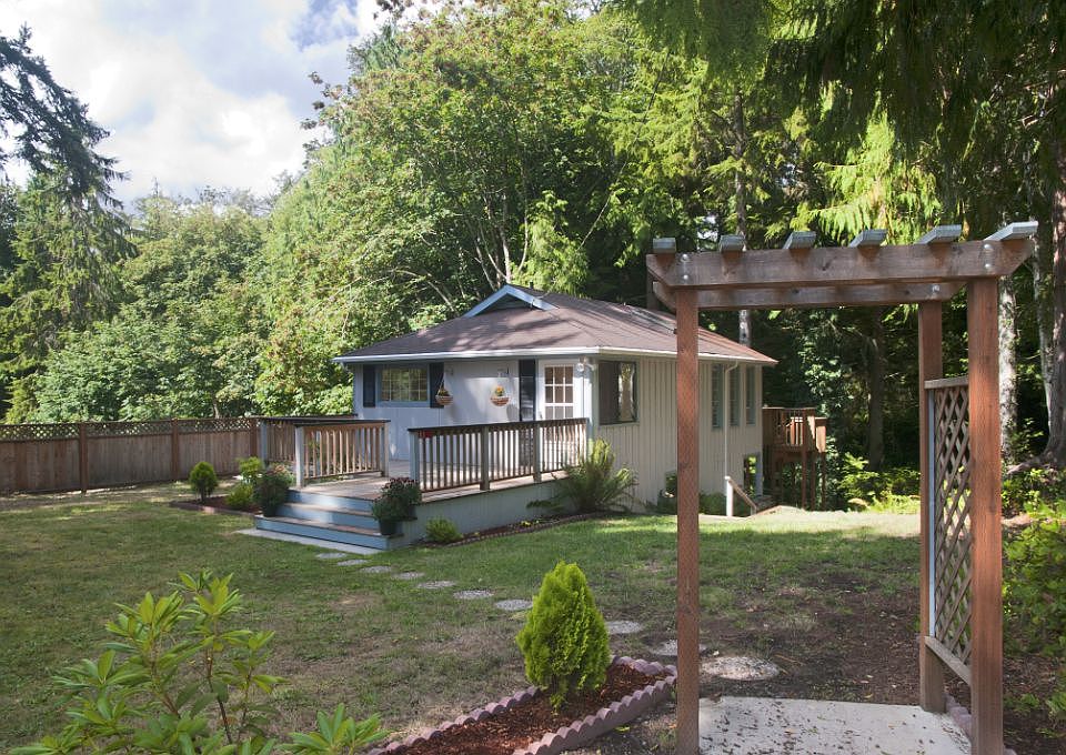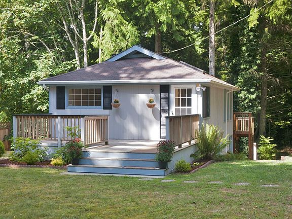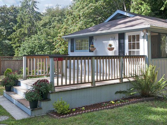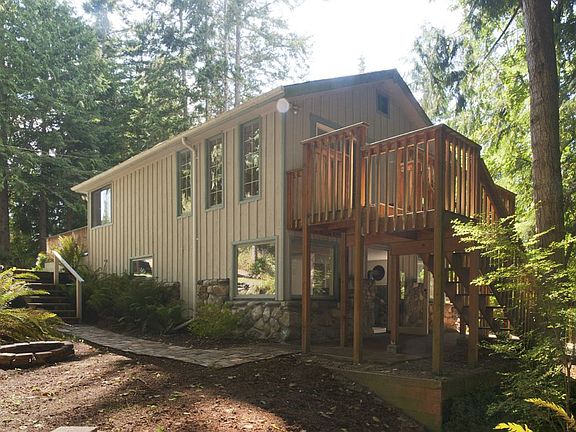 Excellent location in a quiet serene spot just 1 mile from Hood Canal Bridge. Sited on 11,000+ sq lot overlooking a sweet creek w/the best waterfall ever - just for your enjoyment only! Deck off open living plan & patio off lower levels bonus room offer great entertainment opportunities or as perfect spots for you to enjoy this sanctuary. 2 bedroom, large bonus room w/custom river rock wall and wood stove make this one special. Owner will consider carrying contract for qualified buyer.