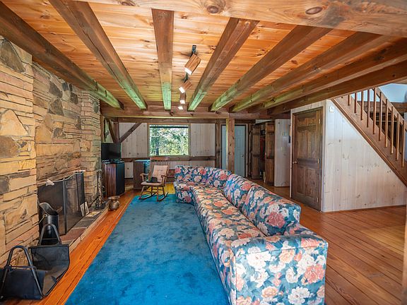 Being offered for the first time since it's construction is this lovely farm property in Wardsboro on a quiet dead end country road, yet not far from skiing or amenities. The property consists of 11.9 acres which is split almost evenly between pasture and woodland. There is a large horse barn with stalls, tack room, hay loft, and storage areas, with a metal roof, that could easily be brought back up to usable condition for whatever your heart may desire. The gambrel style farmhouse features a post and beam interior with exposed woodwork and great natural light. The main level has a large living room with wood burning fireplace, open concept kitchen and dining area, half bath, mudroom or breakfast area, and bright sun porch. The upper level has a large primary suite with vaulted ceiling, 2 guest bedrooms and a full guest bath. The home needs updating and is priced perfectly for someone to put their own touches on it and make this a special spot in the country.