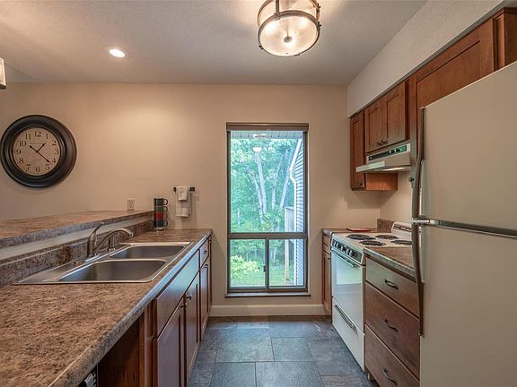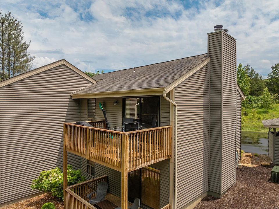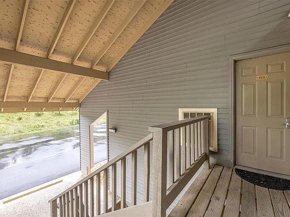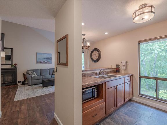 This low-maintenance condo at Innsbrook is the perfect retreat! The spacious, vaulted living room is filled with natural light and complemented by a cozy wood fireplace for winter days. Easy-to-clean laminate flooring adds a warm, inviting feel. A pull-out sofa offers extra sleeping space, and the oversized breakfast counter seats four. The updated kitchen features attractive tile floors, newer cabinetry, and counters. Enjoy meals or drinks on the deck while taking in views of the surrounding woods and wildlife. It's a short walk to the beach and marina. Plenty of guest parking is available. Short-term rentals are allowed and some furnishings are negotiable. Let others handle the exterior maintenance so you can focus on enjoying your time! Location: Upper Level