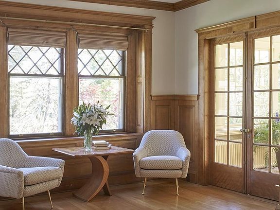 - Din Dscrp: Flooring - Hardwood, Fireplace, Wainscoting, Window(s) - Bay/Bow/Box, Closet/Cabinets - Custom Built, Ceiling - Beamed