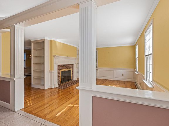 Rare opportunity to live, work and play without leaving home at a truly great value! Gracious Custom Built Colonial just steps to fresh water beach and sited to capture stunning sunset views over Lawrence Pond. LIVE - The hub of the living space is the kitchen where everything joins seamlessly - the breakfast room, formal dining room & living room with back to back fireplaces and fireplaced family room with sliders to private deck. Main level half bath, walk in pantry, front & back staircases and attached two car garage. Upstairs are three bedrooms, full bath, laundry room - plus the primary suite with private bath and slider to balcony - plus bonus room over the two car garage (potential bedrooom) - plus partially finished 3rd floor walk up. Architectural details add visual interest to the living space. WORK - A separate 22x20 office wing with side entrance and central a/c - or perhaps a future in-law apartment (septic designed for 7 BR). PLAY - Located in desirable Rolling Ridge Farm with association sandy beach, kayak launch, picnic tables and tennis courts (HOA fee $325/year).
