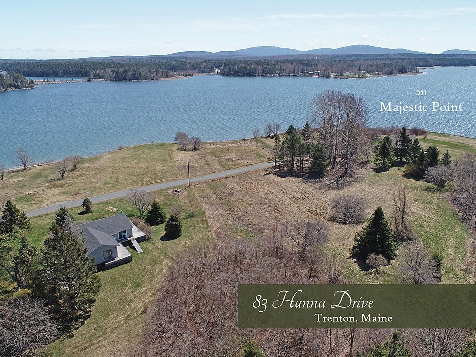 Sweeping views, a long gravel beach & a location near the end of Haynes Point in Trenton define this unique shorefront property. The modest three season camp on site was built in 1980 and has been adored by the same family ever since. Inside the camp, the main living area consists of an open concept kitchen, dining area & living room. A wood stove sits between four sets of glass sliding doors, allowing the panoramic views to be thoroughly savored. Three bedrooms and two full bathrooms are on offer, including two guest bedrooms that share a full guest bathroom and a master suite. Set out on its own 'wing' of the camp, the master suite displays three glass sliding doors, a full bathroom, a laundry/storage room and a 'bonus' room that would be well suited for an office. Almost encircling the entire camp, a wrap-around deck begins at the formal front entry, goes around the living room & dining area and ends at the master suite. This expansive deck provides multiple orientations to catch the sun and views as they shift throughout the day. The camp conveys furnished. While the camp is humble and in need of updating, the site is anything but. Broad vistas to the islands & peaks of Acadia National Park rest upon 3.62 acres of lawn & field leading gently to 413' of gravel, sand & stone beach along the tidal shores of Mount Desert Narrows. Unobstructed & splendid, the setting here is of rare quality. Just a single home lies beyond 83 Hanna Drive, adding further to the sense of solitude provided by the open space. Recent soils work evidences the site's suitability to build new, should the next owner wish to. The private 'Majestic Point' neighborhood is set on its own peninsula with a small gravel road network, meticulously maintained, somewhat reminiscent of Acadia's carriage roads. Located quite literally at the doorstep of Mount Desert Island & beloved Acadia National Park, adventure & beauty are but a short drive, paddle or walk in any direction you'll head.