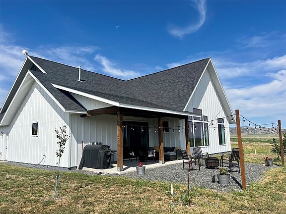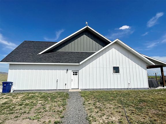 The brick gas fireplace & reclaimed wood mantle from an old dairy farm in Wisconsin are sure to steal the show as you relax in the living room. Between the walnut cabinets & granite countertops you will fall in love with the spacious kitchen. An elongated island with sink in the center allows for ample space for all your cooking/baking activities as you stare out into the Tobacco Mountains. Added pantry space behind dining room table. Engineered laminate flooring throughout the home. Transom windows add unique character over the bedroom doors. Enjoy a soak in the primary bath while staring out into the Bridgers. A secret door will take you up to the unfinished bonus room. Contact Brooke Clark at 406.799.4700 or your real estate professional for your private showing. This home stands out with beautiful board and batten siding and a very intricate hip and valley roof. The inviting tongue and groove covered patio warrants many sips of coffee and conversation in the morning. Outside you'll find a 16x16 shed with a loft inside as well as a lean-to coop.