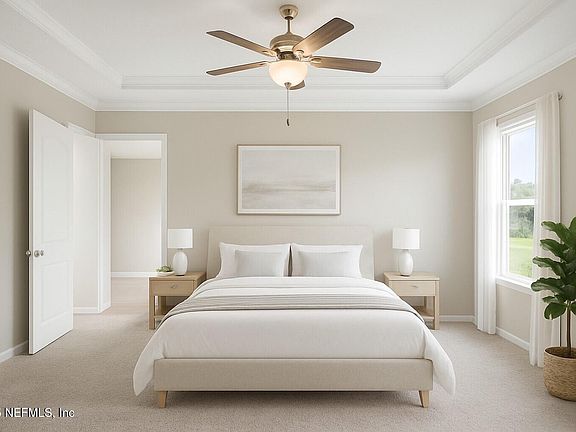 One or more photo(s) has been virtually staged. Experience luxury living in this stunning 3-bedroom, 3-bathroom home in the Grand Landings community! Featuring tall ceilings, including a beautiful cathedral design in the open living area, this home showcases luxury upgrades throughout. The gourmet kitchen boasts quartz countertops, cabinets, upgraded appliances, and an elegant etched-glass pantry door. Wood-look porcelain plank tile enhances the living spaces, while ceiling fans with lights are featured in every bedroom, the living area, and the spacious screened lanai. The primary suite is a true retreat with a large double-sink vanity, a massive walk-in shower, and four separate closets for ultimate storage. Enjoy serene views of the preserve and pond from your screened lanai, perfect for relaxing in nature.The irrigation system runs on reclaimed water for added efficiency. Grand Landings offers resort-style amenities including a clubhouse, fitness center, and community pool, all just minutes from I-95, Flagler Beach, shopping, and restaurants. Don't miss your chanceschedule your private showing today!