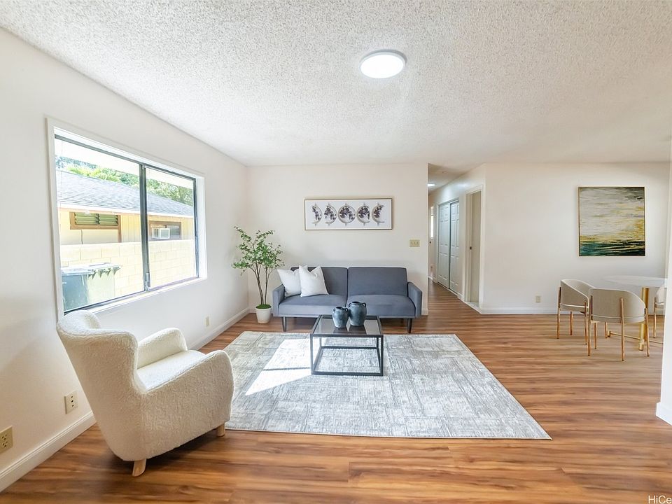 Welcome to this charming single-family home in the desirable Leileihua Village of Wahiawa. Offering 3 bedrooms and 2 full baths, this home features stylish luxury vinyl plank flooring throughout, complemented by ceramic tile in key areas. Freshly painted both inside and out, with brand-new appliances, this home is move-in ready. Enjoy a spacious, fully fenced patio area perfect for outdoor living, along with a low-maintenance yard. The property includes a 2-car garage, 2 additional open parking spaces, and plenty of street parking for guests.