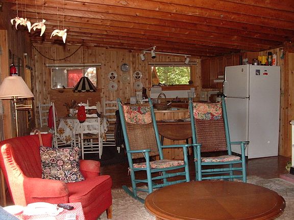 Potash Brook Four Season Cottage This Cozy 2 Bedroom, 2 Bath, Adirondack Cottage is located in the Town of Jay, Essex County. Set amid Embracing Country surroundings it presents an Idyllic backdrop enveloped with an abundance of Peace and Quiet. Remodeled in 1990 the combined Kitchen and Living areas are highlighted in cedar and will become a focal point for family and friends to get together. When you are looking for a moment to relax then kick back on the Spacious Screened Porch overlooking the Jay mountains, a perfect place to read a book and listen to sounds of Potash Brook as it Cascades bye. Just a short walk away is the Covered Bridge, the Town of Jay Park and the Rapids a local swimming hole nationally recognized in Sports Illustrated as one of the most scenic in the nation. The Olympic Village of Lake Placid is nearby with a myriad of specialty shops and restaurants for evening dining and Whiteface Mt. Ski Center is only 15 minutes away for the down hill ski enthusiast. No matter what your interests are you will enjoy the benefit of momentary access from this charming bungalow in the woods.