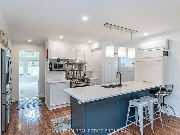 Top 5 Reasons You Will Love This Home: 1) This incredibly versatile turn-key property offers endless possibilities with a spacious two-storey layout paired with a self-contained bungalow suite for added flexibility, whether you're looking for a multi-generational home, a peaceful cottage retreat, an at-home business, or an income-generating opportunity 2) A bright back family room with soaring ceilings that flood the space with natural light and over $135K of upgrades in last 3 years, this home boasts a refreshed kitchen, bathrooms, bungalow suite, an enclosed sunroom addition, and updated landscaping 3) The beautifully renovated bungalow suite provides a private bedroom or office, a self-contained kitchen, and a 3-piece bathroom, making it the perfect space for guests, extended family, rental income, or even a dedicated home office 4) Enjoy outdoor living all year-round with a serene backyard oasis, front and rear decks, mature evergreens, and views of the Georgian Bay sunsets without the higher waterfront taxes, all steps away from marinas, trails, and endless four-season activities such as skiing, snowmobile trails, and ice fishing 5) Ideally located just 2 minutes from Highway 400 and 30 minutes north of Barrie, this home comes with added comforts like an EV charger, a big and bright spray-foam insulated 4'8" high and 407 square foot crawl space, and efficient ductless heating and cooling systems, bonus, 3 mins away a new paramedic/ambulance station is underway, offering peace-of-mind through faster emergency care, and 2 ski hills within 13-minutes away, and the snowmobiling and fishing out your front door. 2,069 fin. sq.ft. All furnishings (negotiable)