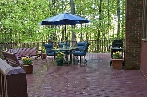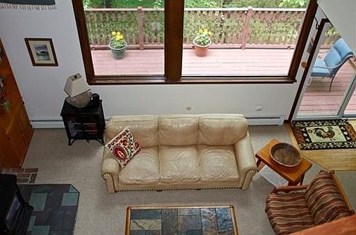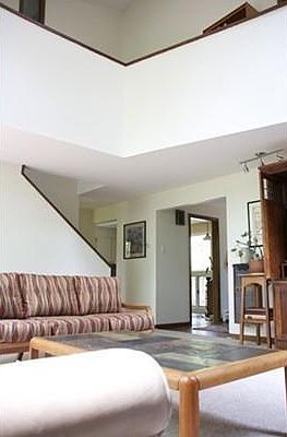 Reduced! This striking 4 bedroom, 2.5 bath Contemporary is in a unique setting: nestled at the end of a cul-de-sac on a quiet & wooded 1 acre lot, yet conveniently walkable to the center of town. The living room is overlaid with soaring cathedral ceilings, a floor-to-ceiling exposed-brick chimney fireplace, pellet stove & massive windows allowing in maximum sunshine & views of the natural world. Eat-in kitchen with Corian counters & stainless appliances, formal dining room & 1st floor den. Brand new 2nd floor full bath with granite counter & double sinks. 3 bedrooms upstairs, all with vaulted ceilings & hardwoods, as well as floor-to-ceiling windows. Walk-out lower level includes a family room with wood burning stove, bedroom/office with cork floor, 3/4 bath & laundry room. Expansive wrap-around deck with furniture for entertaining & a 2-car carport below. Redwood siding, Anderson windows & a newer roof with Architectural shingles.
