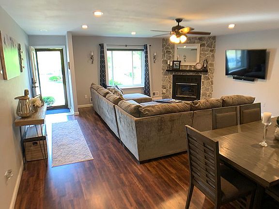 Welcome Home! Come check out this beautifully updated 2 bedroom, 2 bath end-unit ranch style townhome in Canyon Woods. Upon entering you will find beautiful laminate flooring, large living/dining room area with fireplace, brand new windows, and an updated kitchen with breakfast bar. Fully finished basement with a bar area perfect for entertaining and a separate exercise room! Conveniently located to train station, bus stops, major highways, shopping, and restaurants. HOA fee includes roof/exterior maintenance, snow removal, landscaping, garbage collection, and community pool.