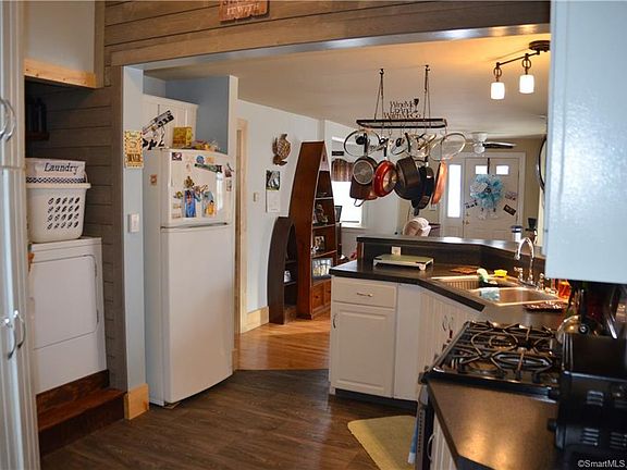 Completely remodeled cape with open floor plan. Updated kitchen with stainless gas stove. Kitchen flows into the dining area which then flows into the living room. The dining area and living room have gorgeous hardwood floors. If desired the entire home can be heated with the wood burning stove in the living room. But the home is heated with baseboard gas heat. One bedroom is located on the main level. It's currently being used as a dining room. The other two large bedrooms are located upstairs both with hardwood floors. Large basement has plenty of room for storage. The back yard is cleared and level and has one large shed. There is also a separate building used as a playroom with electricity. The outside of home is vinyl and the roof is brand new! Contingent on owner finding suitable housing.